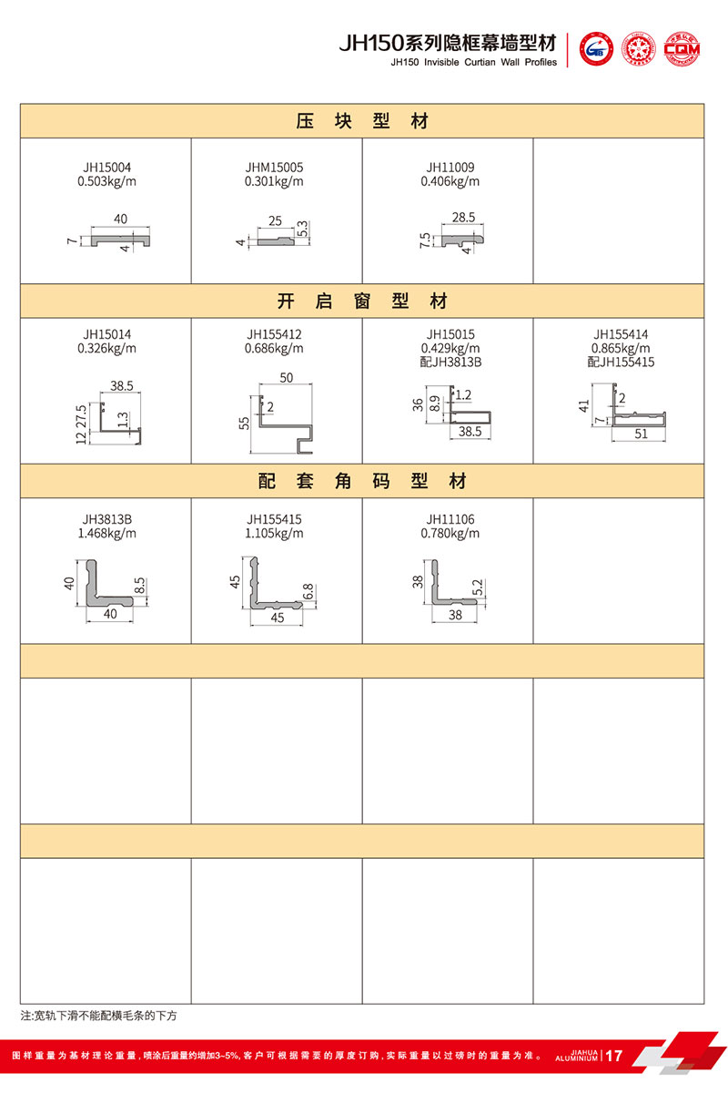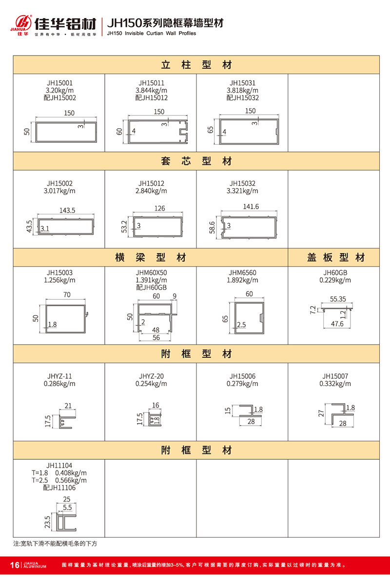 鋁型材規格型號:JH150 B